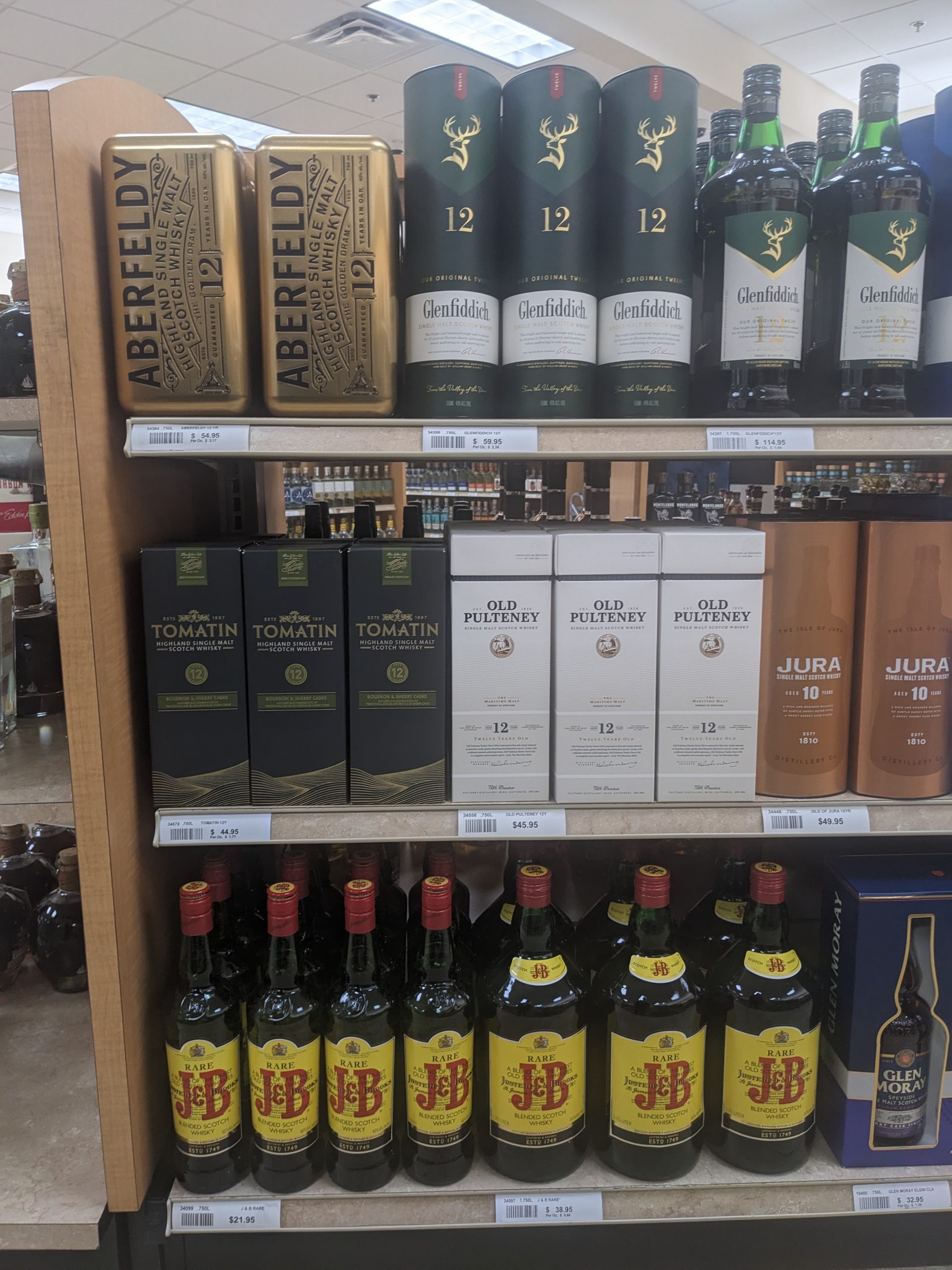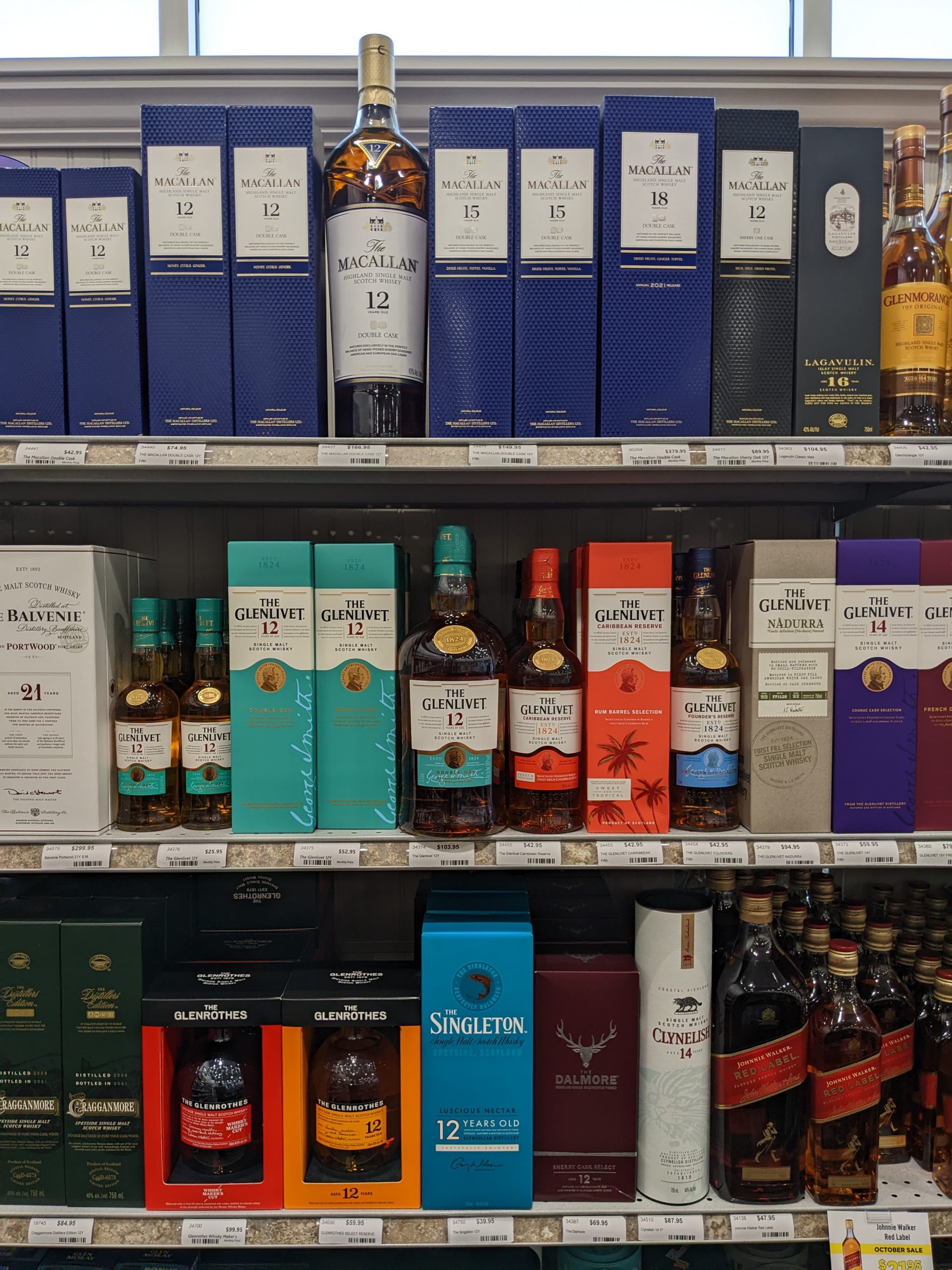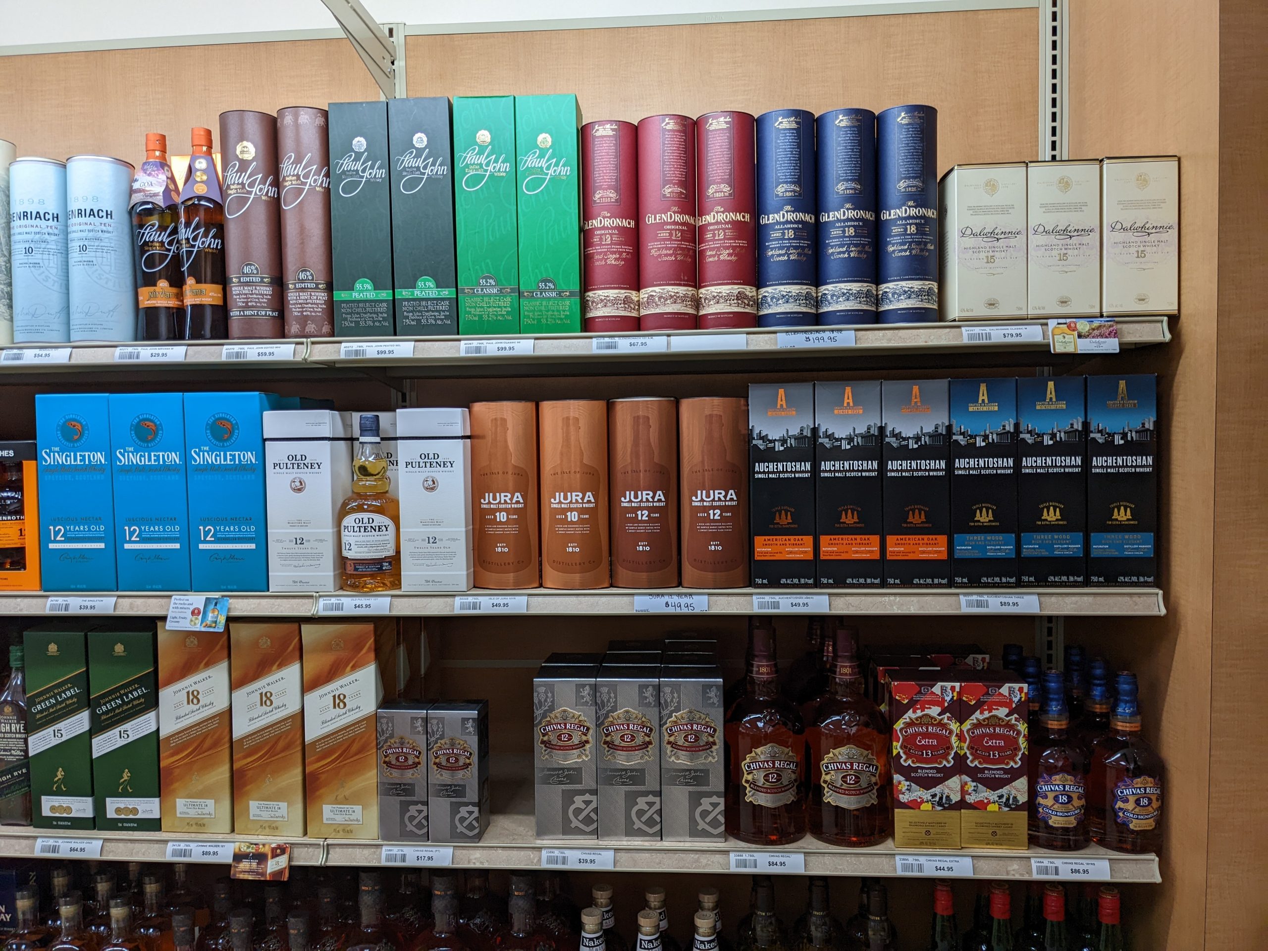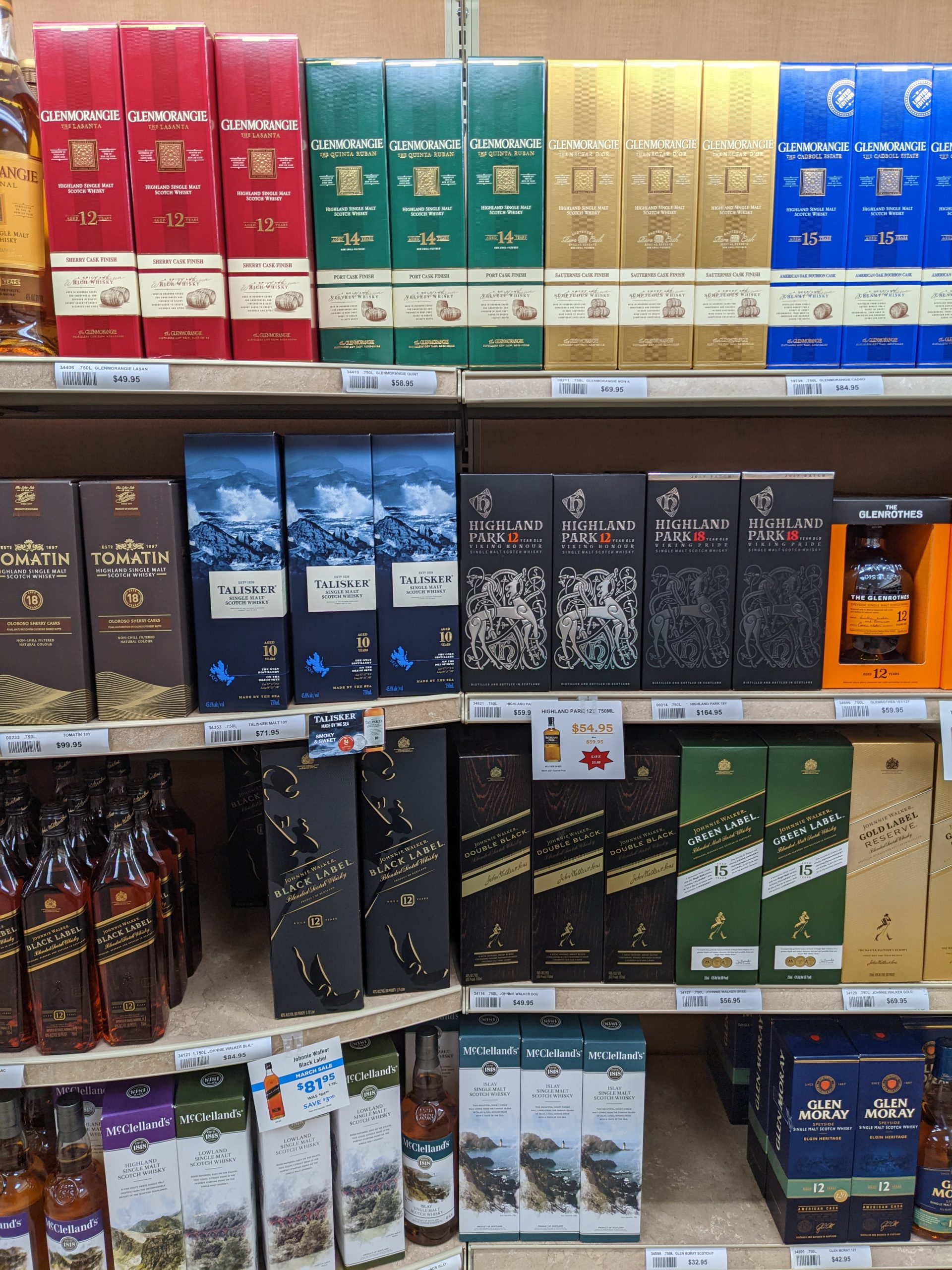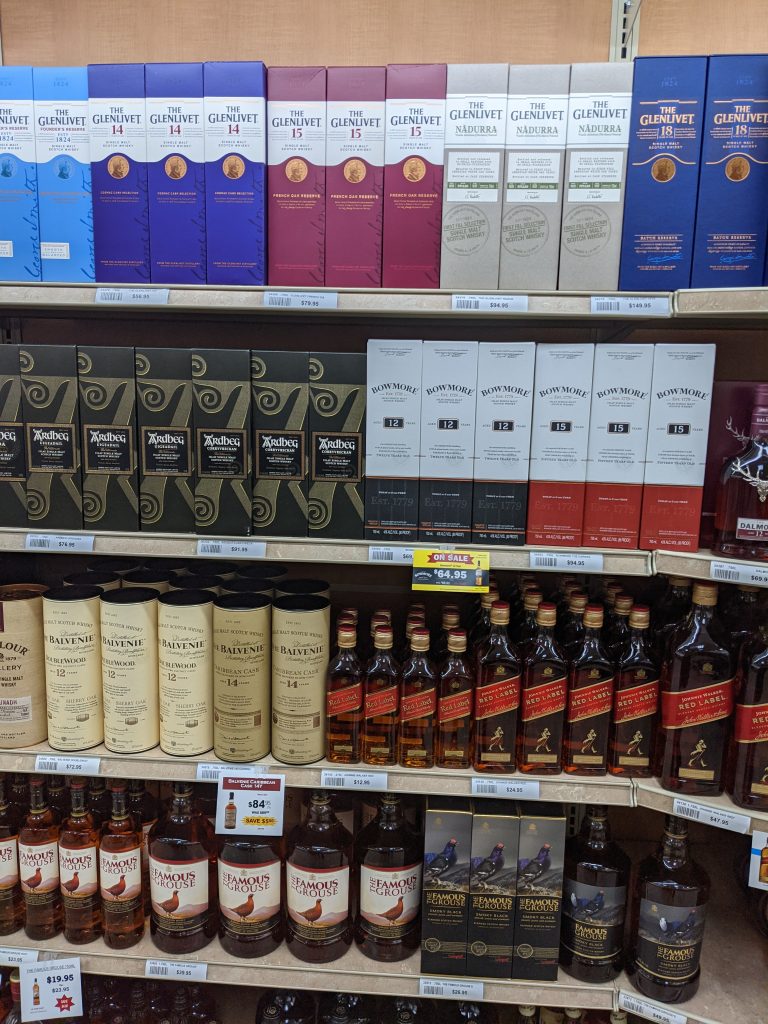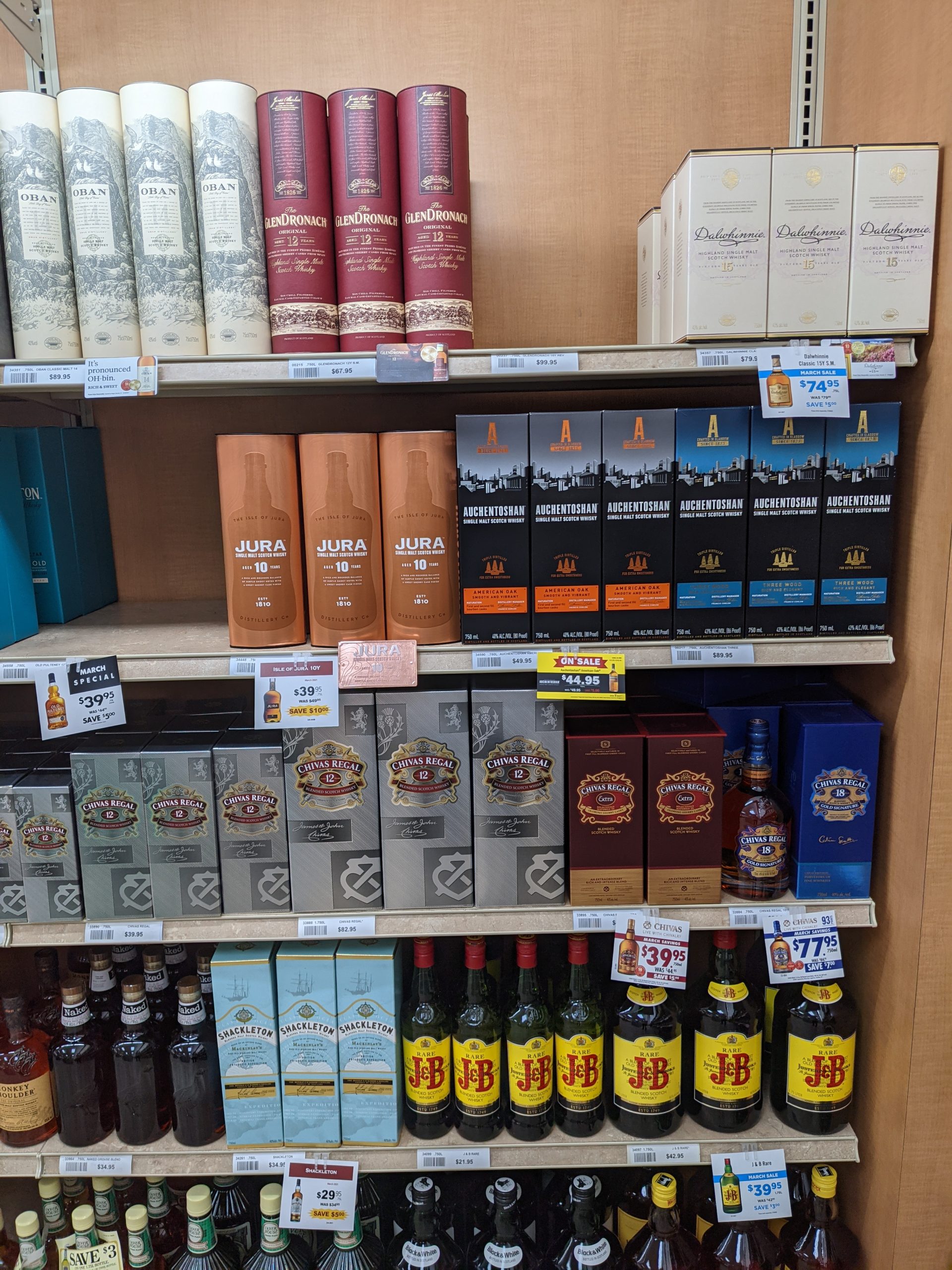 Cell phone photos of retail whisky shelves are a quick and easy way to take notes and create a reference point in the timeline of history. When these snapshots get old enough, I think it will be fun to see the changes in pricing, branding, and availability of whiskies. Comparing them to your local whisky retailer may also be interesting. All photos are my own, and archived here in chronological order. The resolution is high enough to view prices and some label text.