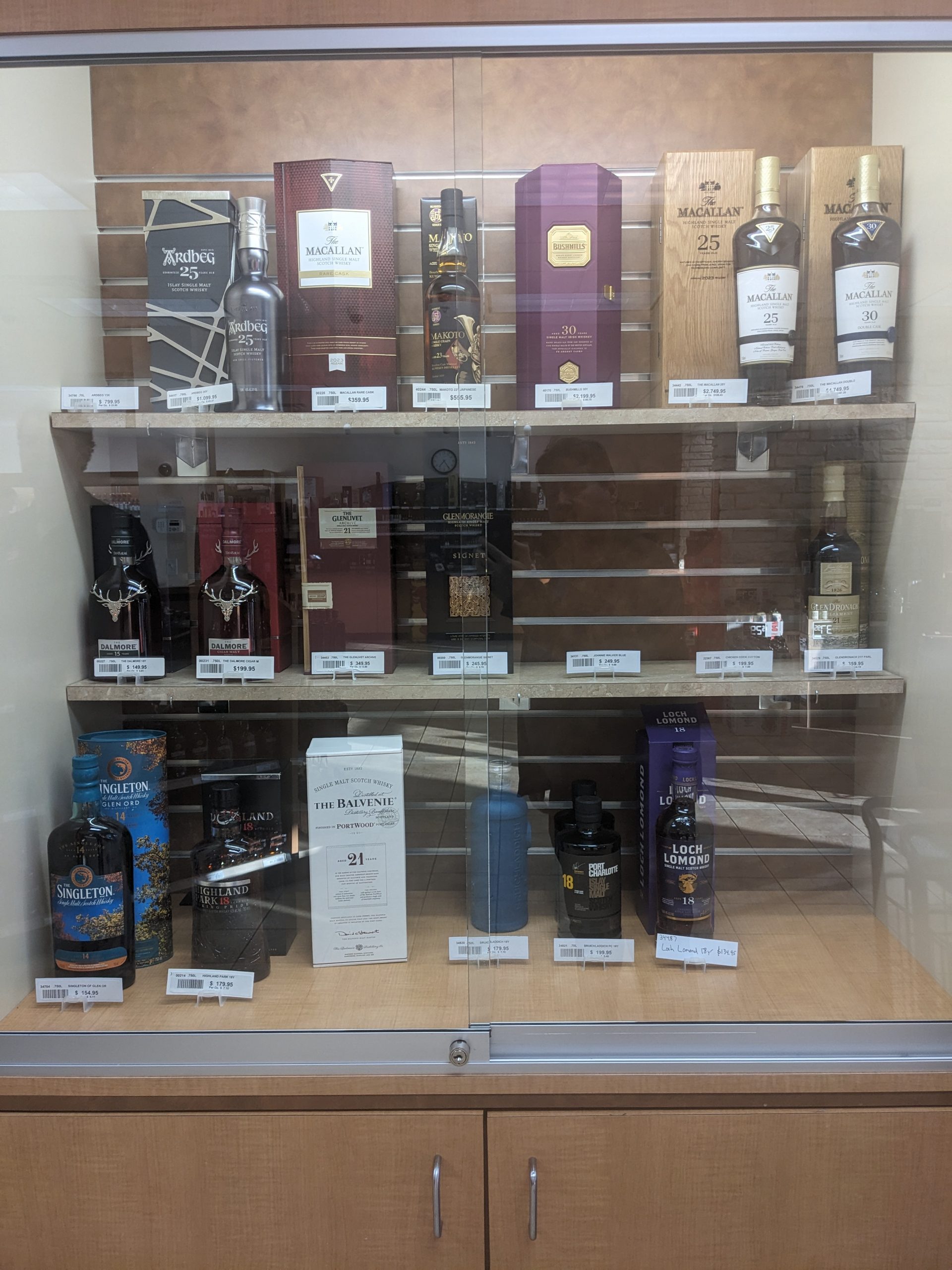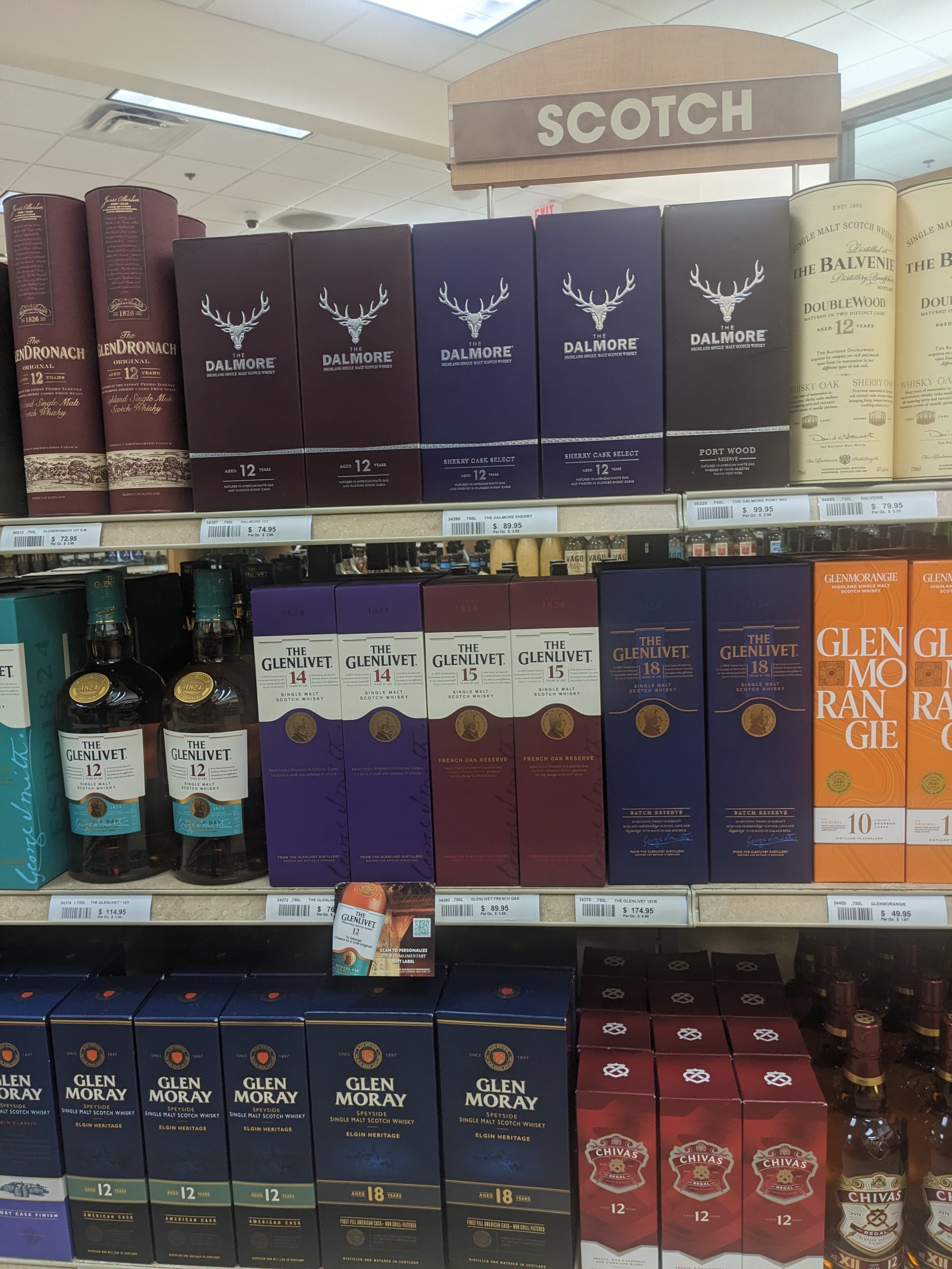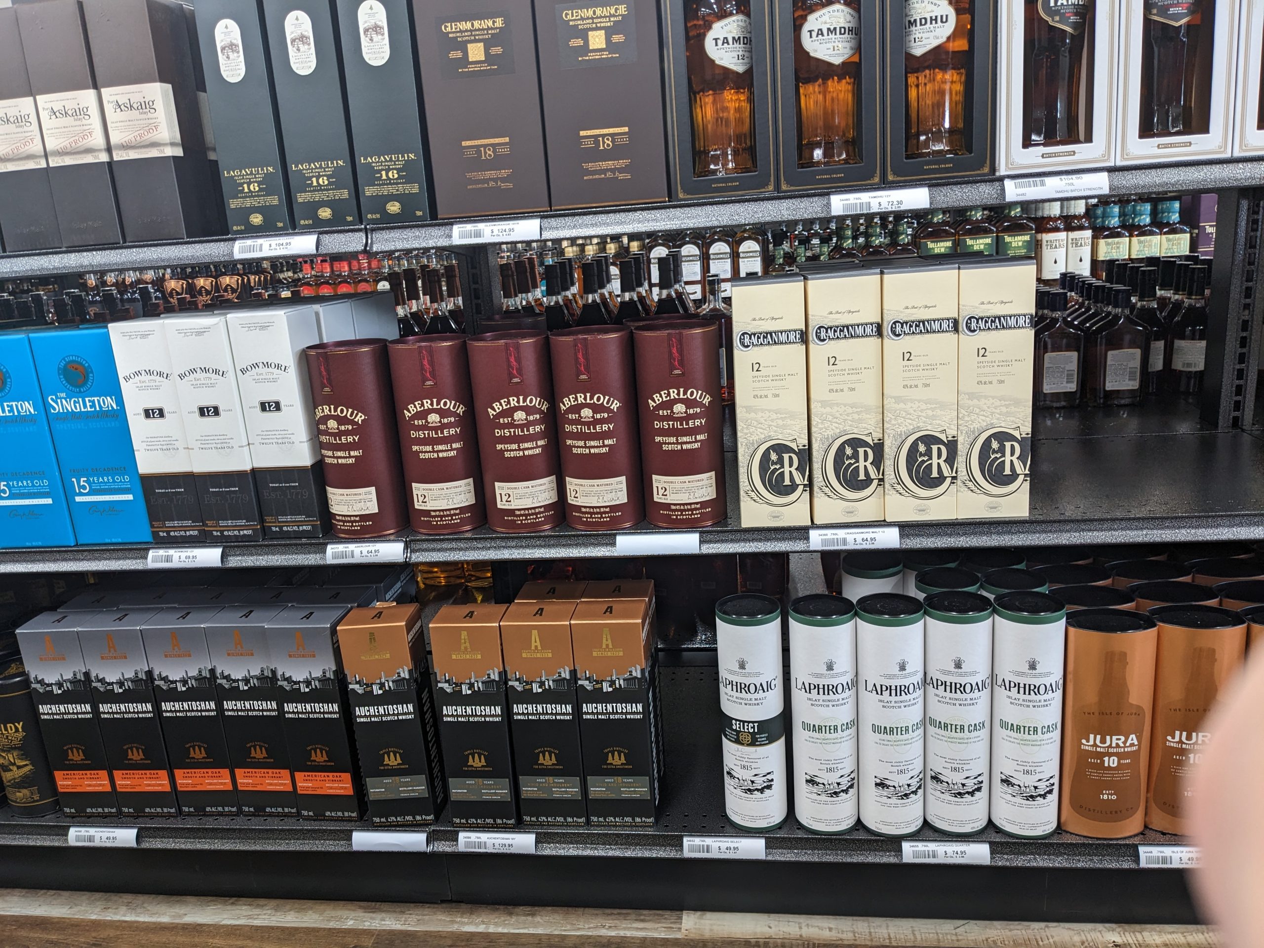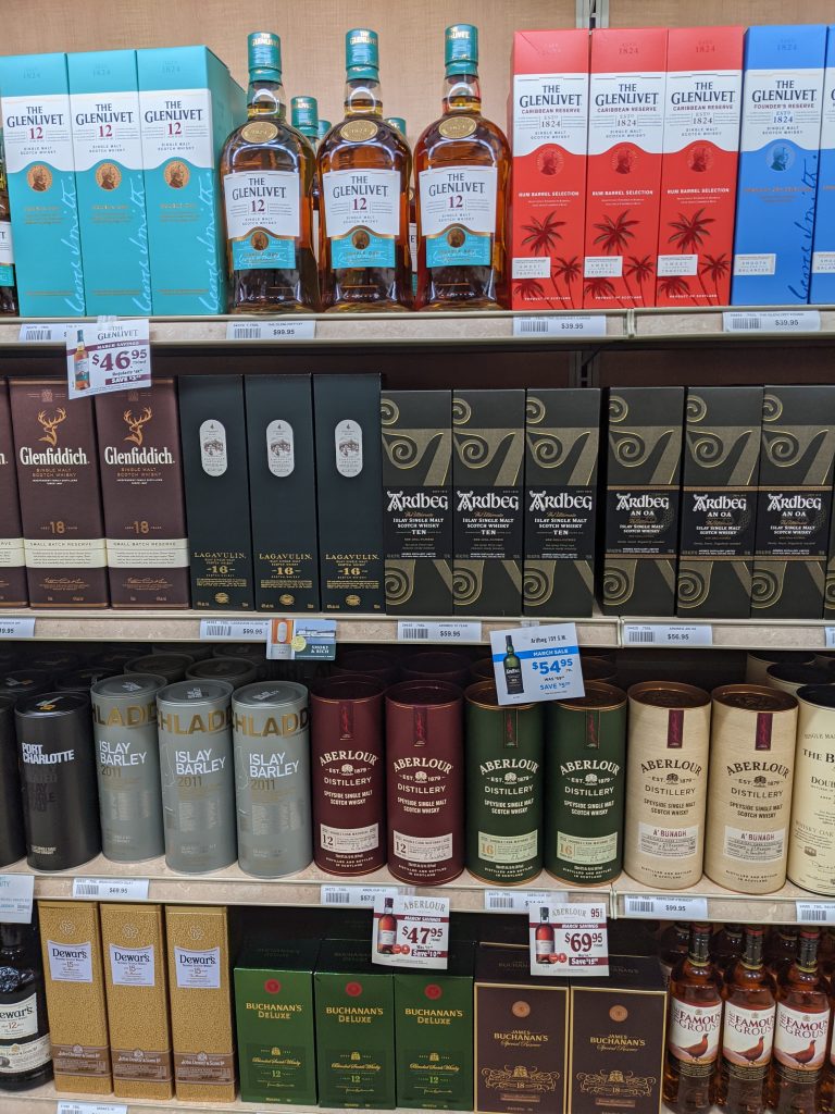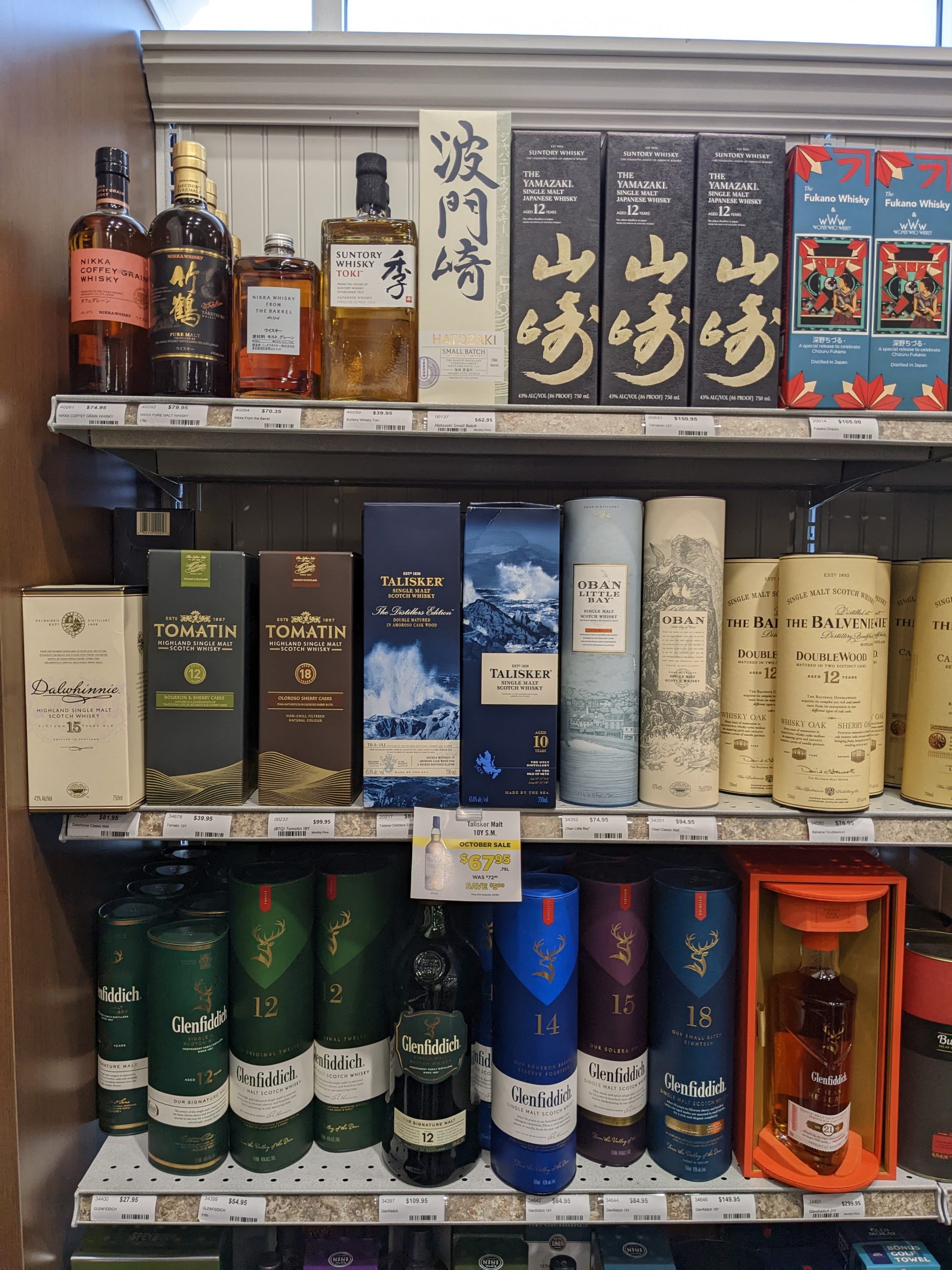 Cell phone photos of retail whisky shelves are a quick and easy way to take notes and create a reference point in the timeline of history. When these snapshots get old enough, I think it will be fun to see the changes in pricing, branding, and availability of whiskies. Comparing them to your local whisky retailer may also be interesting. All photos are my own, and archived here in chronological order. The resolution is high enough to view prices and some label text.