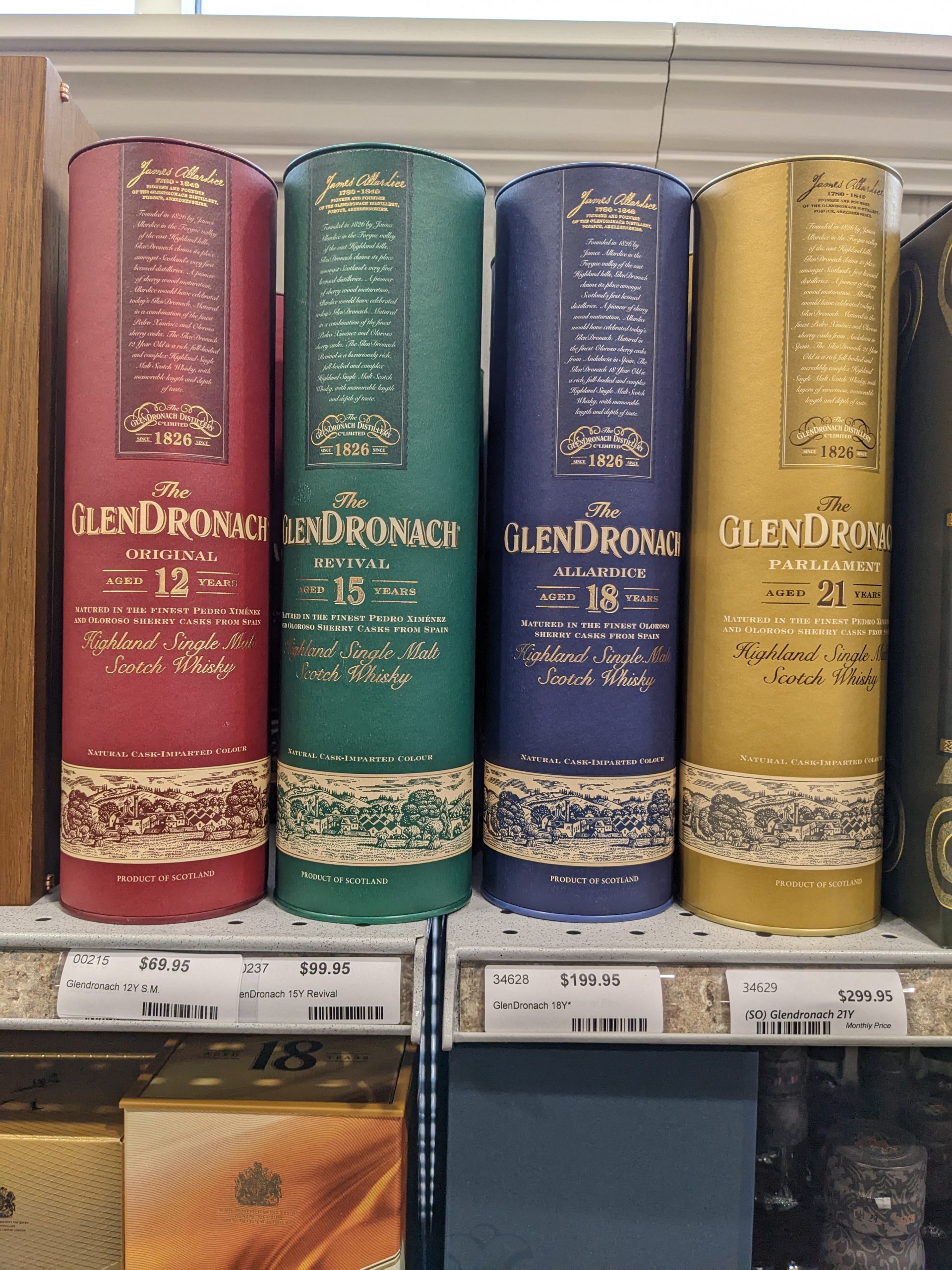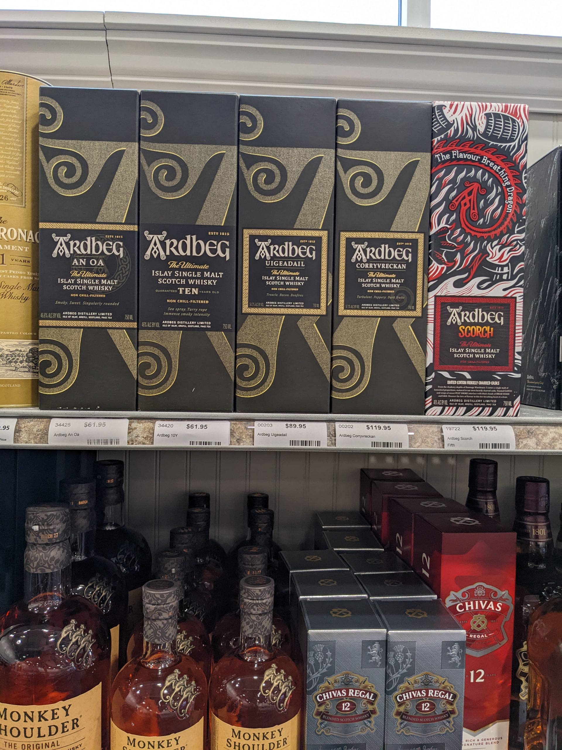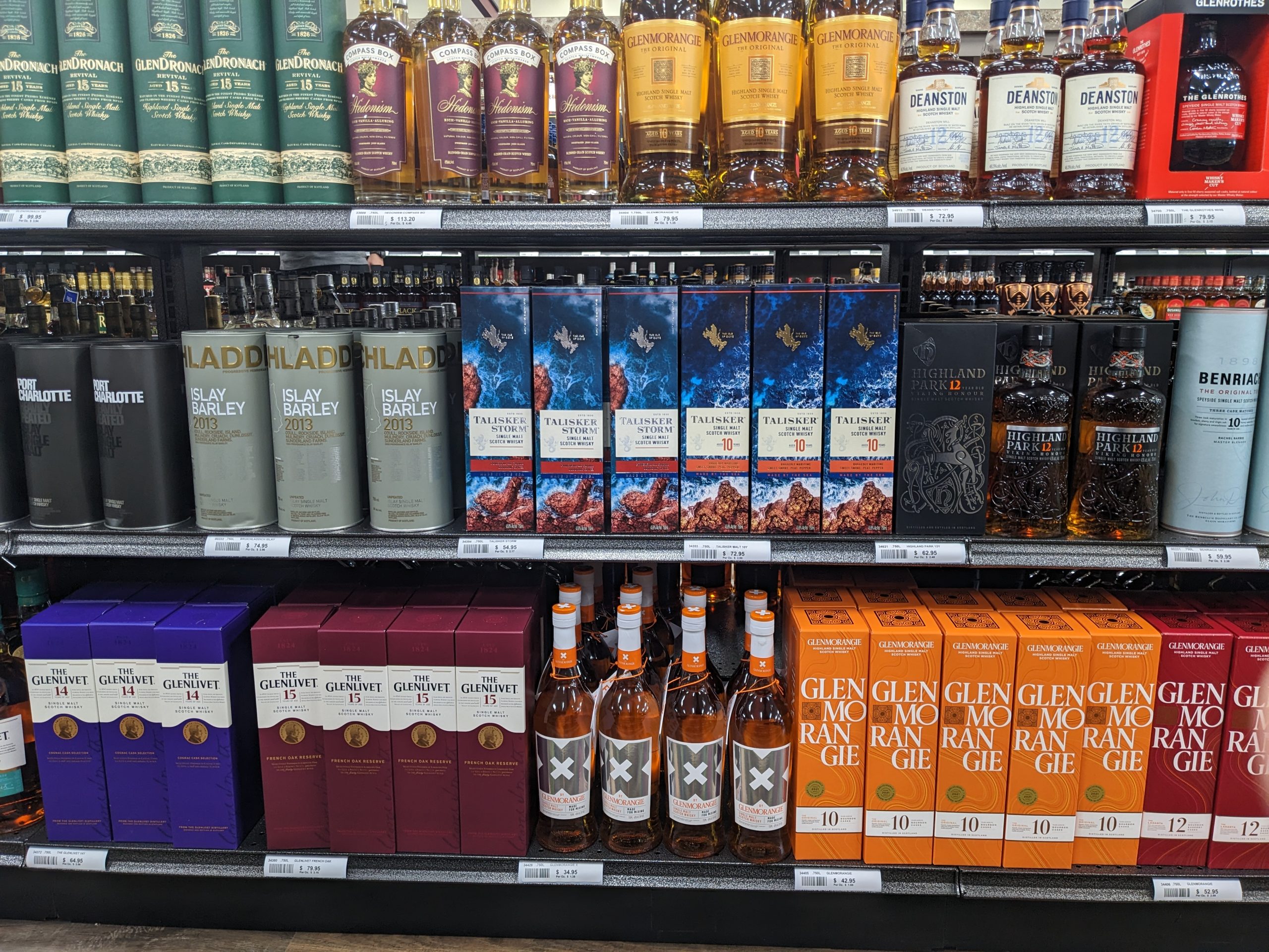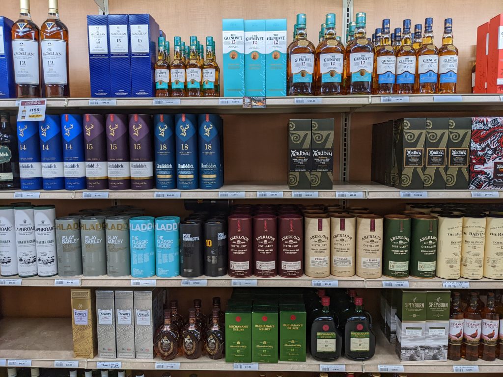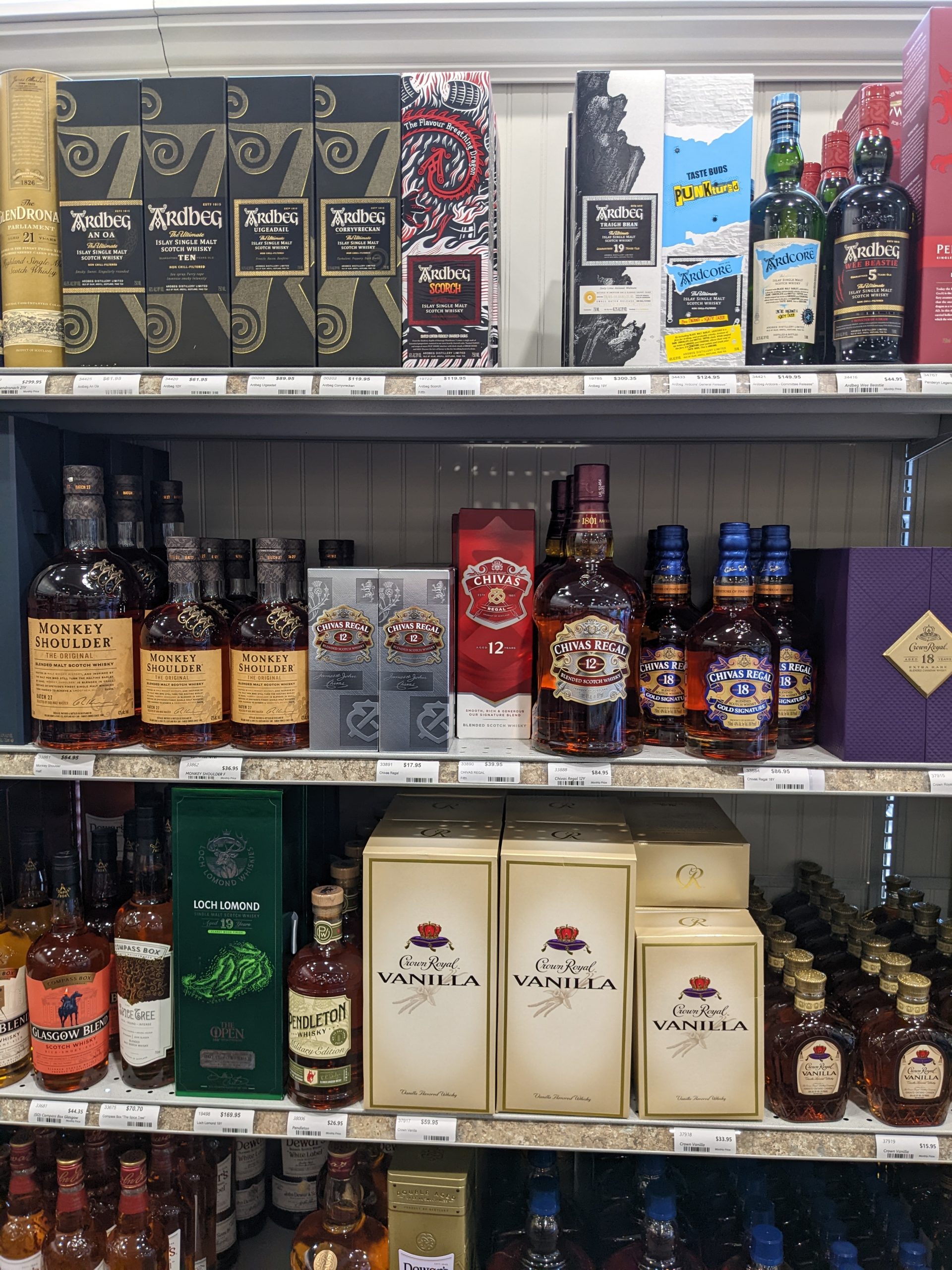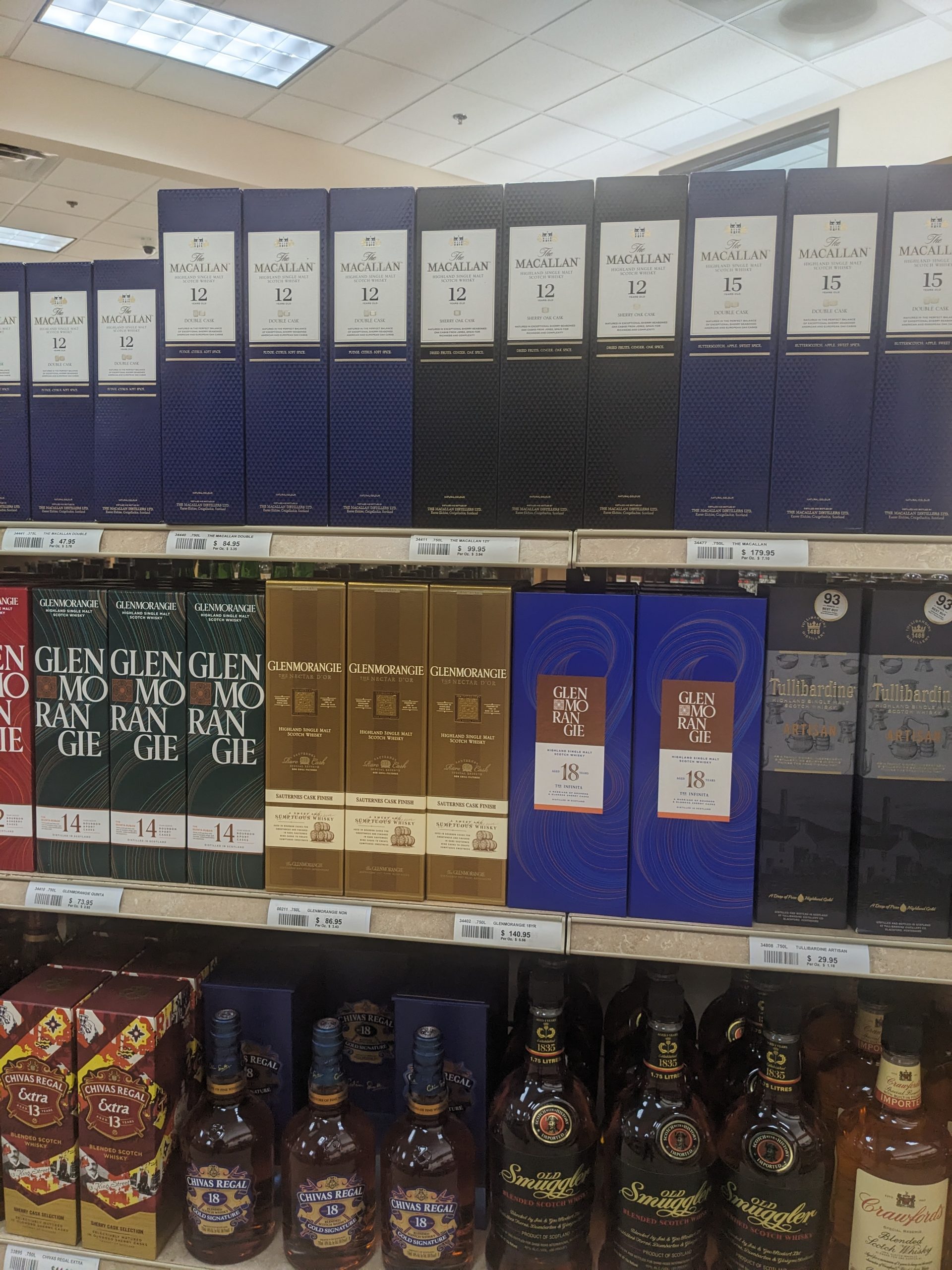 Cell phone photos of retail whisky shelves are a quick and easy way to take notes and create a reference point in the timeline of history. When these snapshots get old enough, I think it will be fun to see the changes in pricing, branding, and availability of whiskies. Comparing them to your local whisky retailer may also be interesting. All photos are my own, and archived here in chronological order. The resolution is high enough to view prices and some label text.